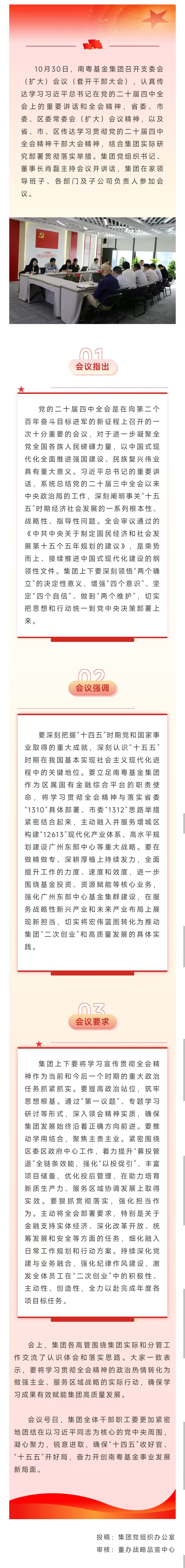南粤基金集团召开会议认真传达学习习近平总书记在党的二十届四中全会上的重要讲话和全会精神