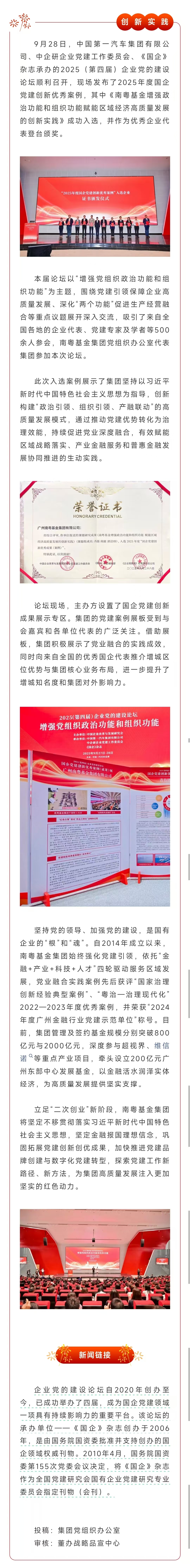 南粤基金集团亮相2025(第四届)企业党的建设论坛并获表彰